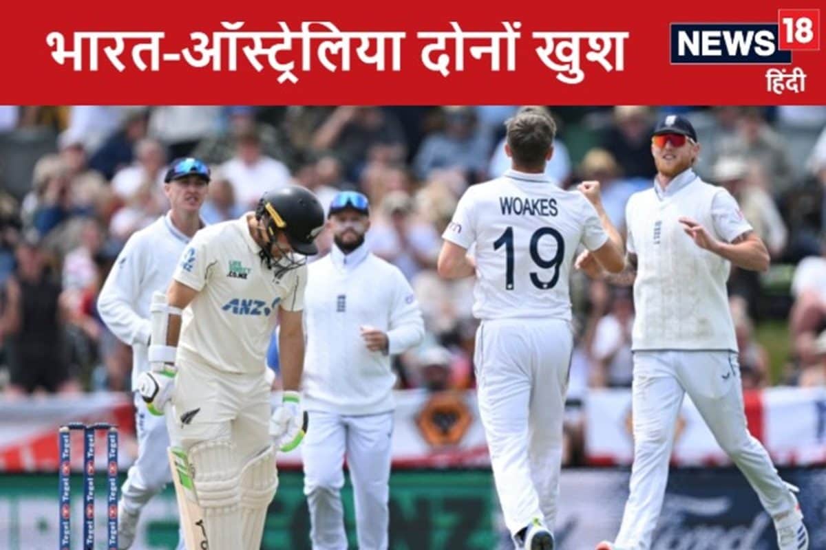 नई दिल्ली. भारतीय क्रिकेट टीम लगातार तीसरी बार वर्ल्ड टेस्ट चैंपियनशिप फाइनल में जगह बनाने के करीब है. भारत और ऑस्ट्रेलिया के बीच खेली जा रही टेस्ट सीरीज के बाद काफी कुछ साफ हो जाएगा. 5 मैचों की सीरीज का पहला मुकाबला जीतकर भारत ने फाइनल की अपनी दावेदारी और मजबूत कर ली है. इंग्लैंड और न्यूजीलैंड के बीच खेली जा रही सीरीज पर सबकी नजर थी जहां से अच्छी खबर आई है. मेजबान न्यूजीलैंड को करारी हार मिली जो भारत और ऑस्ट्रेलिया दोनों के लिए अच्छा है.