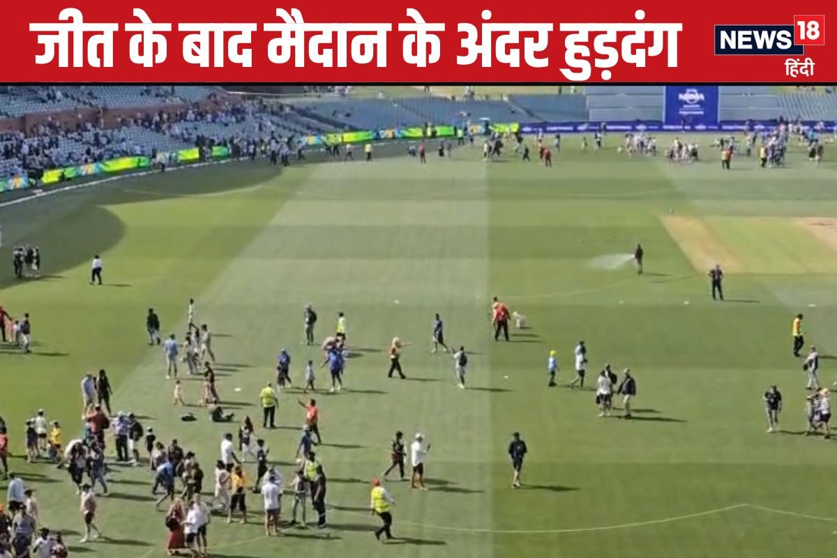 एडीलेड. ऑस्ट्रेलिया को मिली जीत के बाद दर्शक मैदान के अंदर पहुंच गए और अपनी खुशी जाहिर की. पिच क्यूरेटर के मना करने के बाद फैंस पिच की तरफ तो नहीं गए पर भारतीय ड्रेसिंग रूम के बाहर जमकर नारे लगाते रहे. सिराज और हेड के बीच हुई बहस के बाद सीरीज बहुत गर्म हो चुकी है. और माना जा रहा है बचे हुए मैच बहुत गहमागहमी के बीच होंगे.