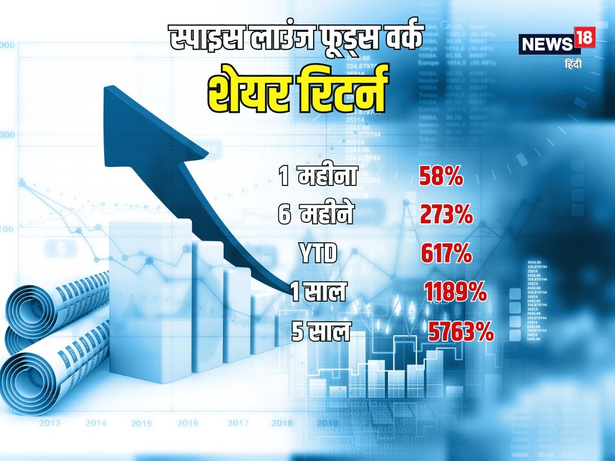 मल्टीबैगर शेयर स्पाइस लाउंज फूड्स वर्क पिछले छह सेशन में ही 26 फीसदी चढ चुका है. पिछले छह महीनों में इसका रिटर्न 273% के पार पहुंच गया है साल 2025 में अब तक इसमें 617% की उछाल दर्ज कर चुका है. पिछले एक साल में इस शेयर ने निवेशकों को 1189 फीसदी रिटर्न दिया है और पांच साल में 5763 फीसदी. इतनी जोरदार तेजी ने इस शेयर को सीधे बाजार के सबसे चर्चित मल्टीबैगरों की सूची में ला खड़ा किया है.